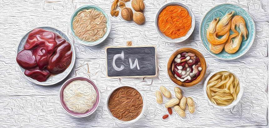 Печень, мясные продукты, молочные изделия, яйца, темно-зеленые овощи, хлеб из цельного зерна, крупы и орехи.